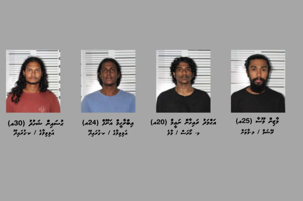 މޫނު ނިވާކޮށްގެން ތިބި ބަޔަކު އިއްޔެ ފަތިހު އެއާޕޯޓުން ބެންކް އޮފް މޯލްޑިވްސް (ބީއެމްއެލް) ފައިސާތަކެއް ފޭރިގެން މައްސަލައިގައި ހައްޔަރު ކުރި ހަތަރު މީހުންގެ ވަނަވަރު ފުލުހުން މިއަދު އާންމުކޮށްފިއެވެ.
